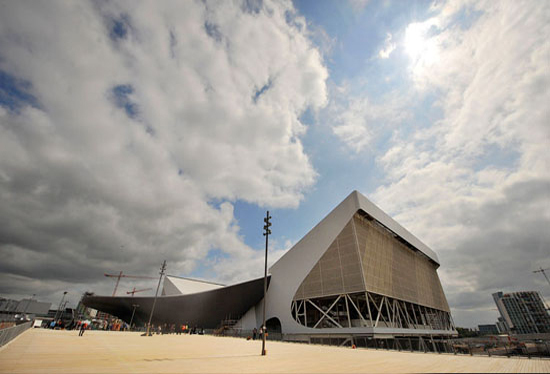 水上中心由伊拉克建筑師扎哈·哈迪德設(shè)計(jì),游泳和跳水比賽將在此進(jìn)行,兩翼的臨時(shí)座椅在奧運(yùn)會(huì)結(jié)束后也可被拆卸。