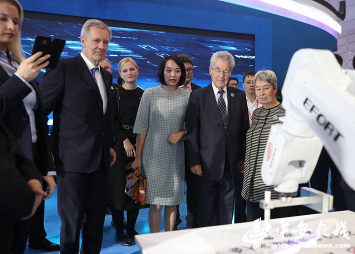 有朋自遠方來,齊聚精品安徽,點贊皖美制造。9月19日晚,2019世界制造業(yè)大會開幕在即,外國前政要、聯(lián)合國工發(fā)組織、英國代表團在內(nèi)的數(shù)十名外賓來到此次制造業(yè)大會的主展館參觀。展館內(nèi),高顏值的智能機器人“佳佳”,復(fù)興號穿上“國產(chǎn)跑鞋”的馬鋼車輪,會跳搖擺舞的多用途機器狗等展品充分展現(xiàn)了安徽“高精尖”的制造實力,贏得外賓一致點贊。包容開放讓安徽的“朋友圈”越來越大。