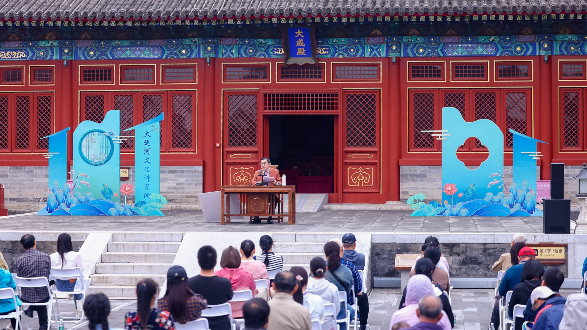 5月23日,大運河國家5A級文化旅游景區(qū)內(nèi),燃燈塔光影與大成殿飛檐交相輝映,大運河文化講習所2025年月主題宣講在此舉辦。