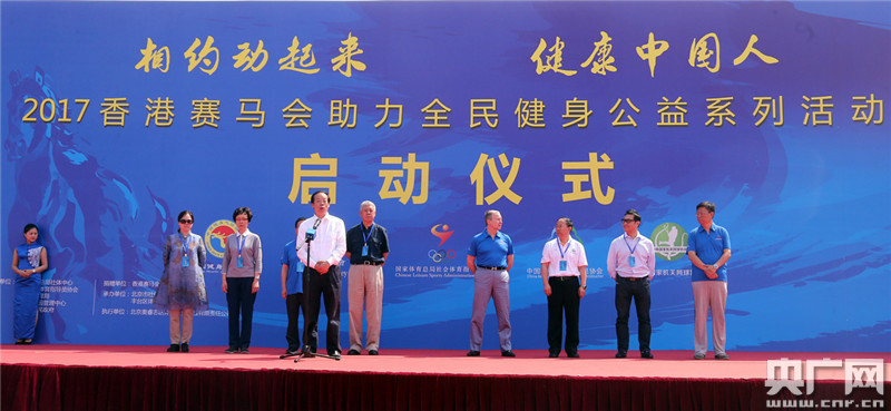 央廣網北京5月27日消息(記者王延輝)由香港賽馬會出資國家體育總局社會體育指導中心、中國社會體育指導員協(xié)會、北京市體育局、北京市公園管理中心、豐臺區(qū)人民政府主辦,北京市社會體育管理中心、豐臺區(qū)體育局承辦的香港賽馬會助力全民健身公益系列活動啟動儀式今天(27日)上午在北京園博園舉行。本次活動得到了北京園博園管理中心的大力支持。國家體育總局副局長趙勇先生、香港賽馬會行政總裁應家柏先生以及國家體育總局相關職能部門、北京市體育局、豐臺區(qū)人民政府等各界領導和嘉賓、社會體育指導員代表以及1000余名健身愛好者參加了啟動儀式。