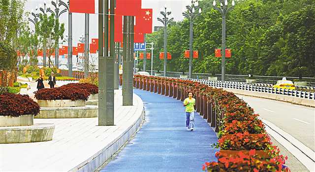 10月11日,江北區(qū)北濱路石門大橋至吉川路段,市民在拓寬改造后的景觀帶上慢跑。目前,北濱路嘉華大橋到石門大橋段綜合改造工程景觀提升進入收尾階段,嘉華大橋至吉川路口段改造基本完工,石門大橋至吉川路口段改造今年底完工。工程內(nèi)容包括路面拓寬、設置慢行系統(tǒng)、慢跑道、廣場式人行道及鮮花綠植等,打造時尚、悅動的濱江休閑景觀帶,為市民提供休閑娛樂的空間。