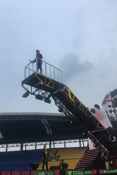 熊貓既充當(dāng)舞臺又兼顧DJ,如此忙碌的它們還不忘做最忠實(shí)的觀眾。熊貓的眼睛由LED組成,除了作為舞臺背景燈光之外,還可以靈活的轉(zhuǎn)動,并追隨演員的腳步,活靈活現(xiàn),完全不輸給真正的熊貓。