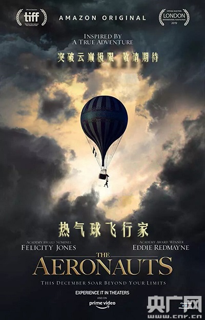 《熱氣球飛行家》講述了19世紀(jì)英國科學(xué)家真實的探險故事:首次借助無動力熱氣球,飛抵人類此前從未抵達(dá)過的高度,探尋天空的秘密,并為人類預(yù)測天氣奠定了重要基礎(chǔ)。片中男女主角不僅將人類未攜帶氧氣瓶僅利用熱氣球上升的最高高度從26000英尺提升至30000英尺,而且這項紀(jì)錄在之后的40年都無人打破。該事件中所記錄的科學(xué)數(shù)據(jù),成為現(xiàn)代氣象學(xué)觀測的基礎(chǔ),改變了人類只能依靠動物或植物的反應(yīng)才能勉強(qiáng)預(yù)知天氣的狀況,也加深了人們對平流層的理解,對于推動人類航空探索也有著重要意義。