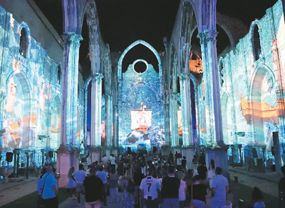 “星空下的里斯本”聲光電體驗(yàn)式藝術(shù)展近日亮相葡萄牙首都里斯本的卡爾莫教堂遺址,這項(xiàng)展覽利用多媒體影像展示,配以葡萄牙特色民族音樂(lè),展現(xiàn)葡萄牙和里斯本豐富的歷史文化。
