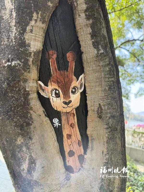 一個樹洞里冒出了一只“長頸鹿”“。補丁”坐標:西湖公園