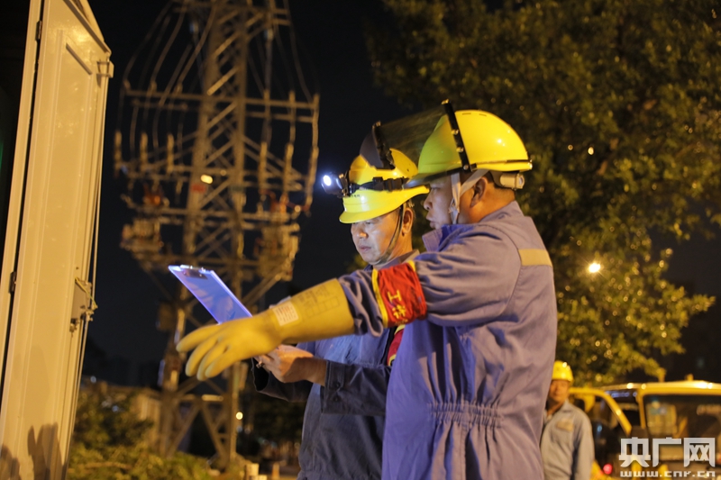 2020年11月8日,鶴山供電局對鶴山工業(yè)城A區(qū)進行線路升級改造,有效提升線路轉供電能力和抗災能力,也為工業(yè)園日益增長的負荷需求提供保障。圖為鶴城供電所工作人員在做好復電準備(央廣網(wǎng)發(fā) 許湘粵攝)