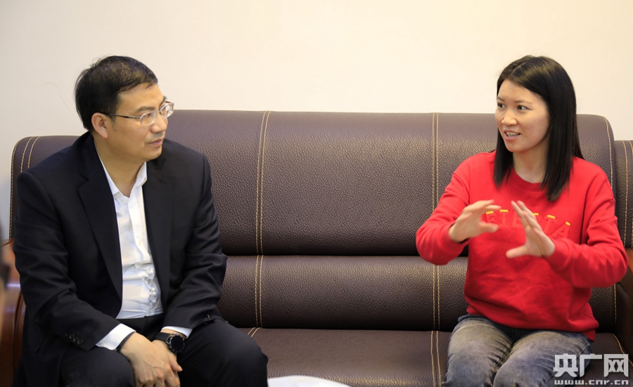 汕尾市稅務局黨委委員、總經濟師郭郁(左)與全國人大代表張麗(右)座談交流。(央廣網發(fā))