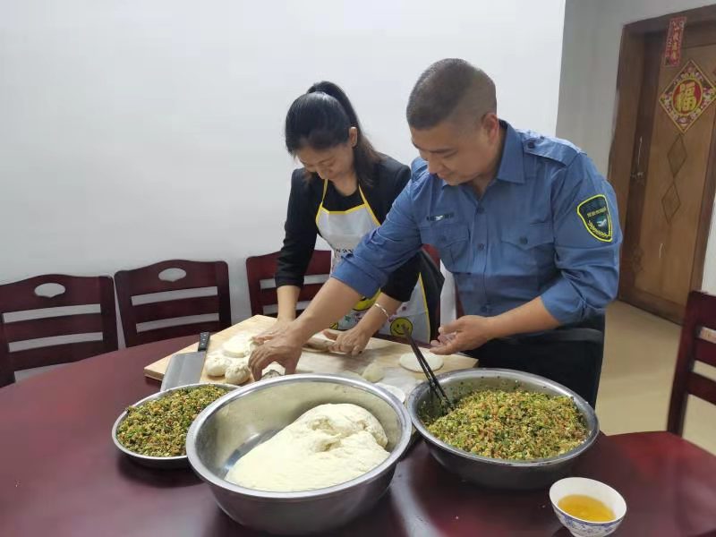 年蒸,是中國的傳統(tǒng)民俗文化,也是許多人心中的過年大事!按汗(jié)了,我們的隊員們都在忙春運,肯定沒空好好吃飯,就拉上我愛人一起給大家做個家鄉(xiāng)味道的包子和餃子嘗嘗,她的手藝可好了。”粵運拯救第四拯救大隊副大隊長陳東一邊搟著面皮,一邊笑瞇瞇地介紹。