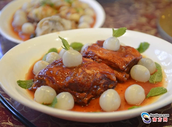 五、瓊液凝脂風(fēng)味骨 注:荔枝拼無錫骨