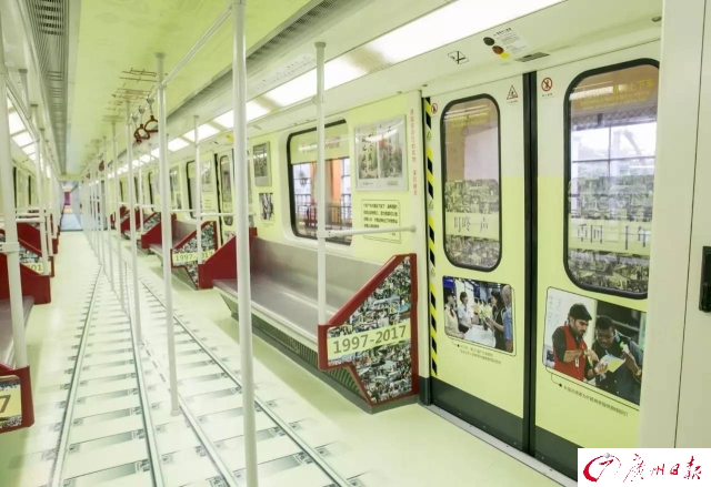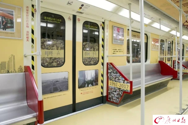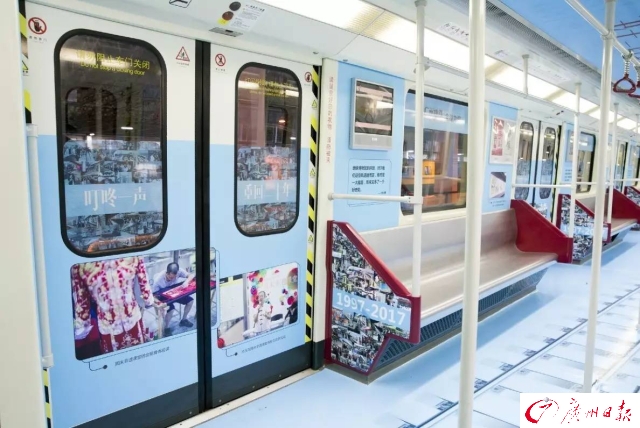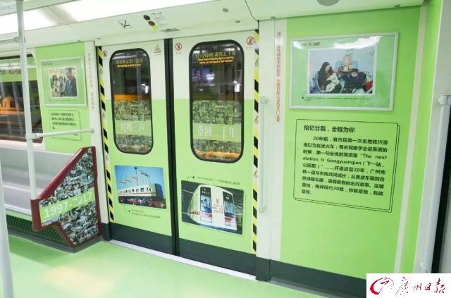 為了慶祝開(kāi)通運(yùn)營(yíng)20周年,廣州地鐵第一列車(chē)(一號(hào)線0102車(chē))變身“回憶專(zhuān)列”,再次上線服務(wù)。1997年4月10日,一號(hào)線0102車(chē)從德國(guó)運(yùn)抵廣州黃埔港。20年來(lái),黃色的外表、“叮咚叮咚”的關(guān)門(mén)聲音,都成為市民生活的一部分。