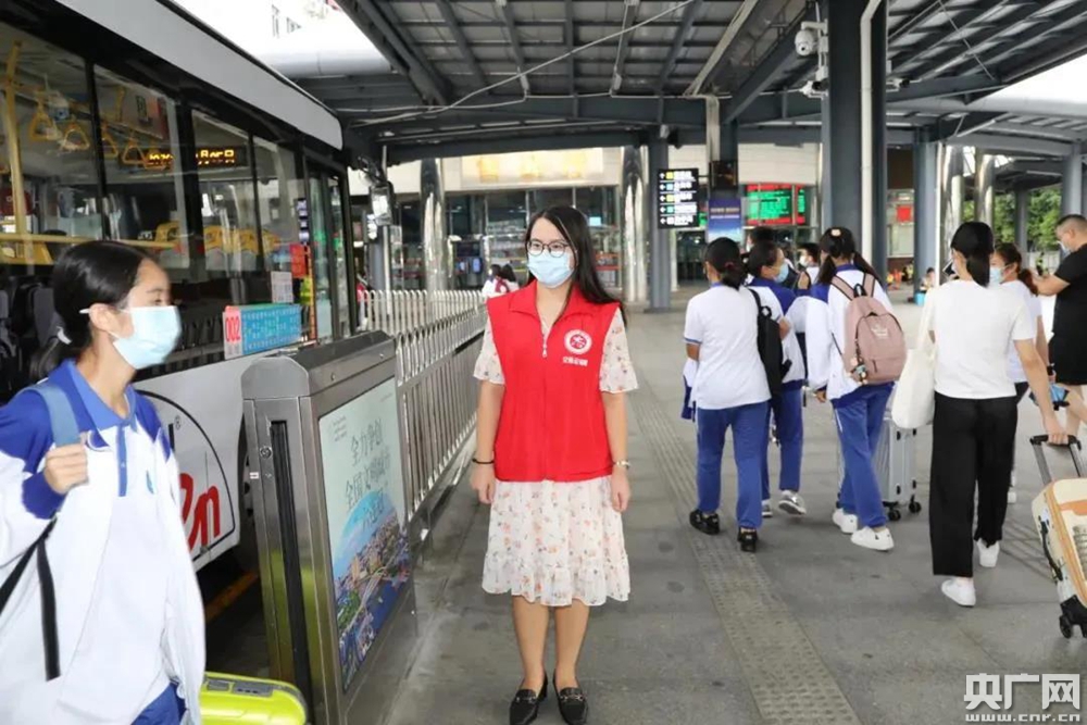 有的乘客向她詢問車票怎么電子購票;有的乘客因為趕車而無法吃飯,張藝就迅速幫她用手機訂購了外賣……為汽車站里的旅客提供志愿服務就是張藝的日常。