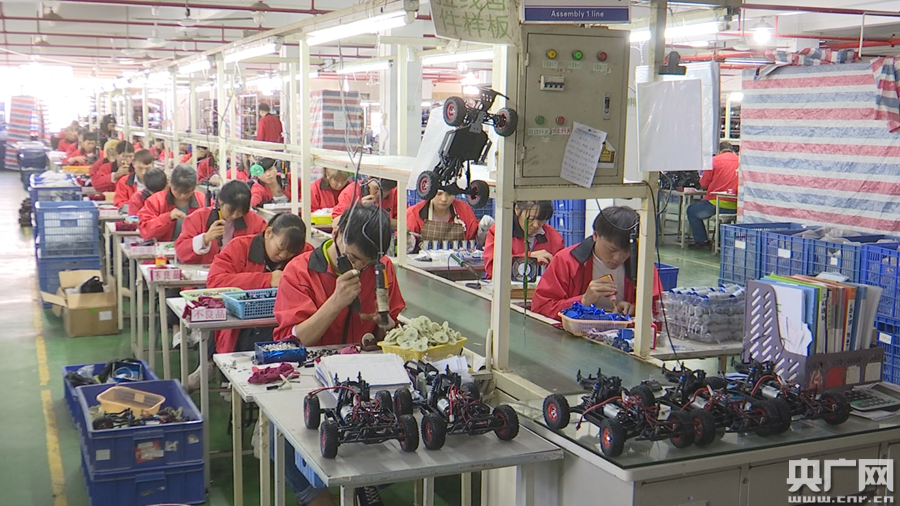 在廣東汕頭一家玩具工廠的生產(chǎn)線上,工人正熱火朝天地趕制一批玩具訂單。