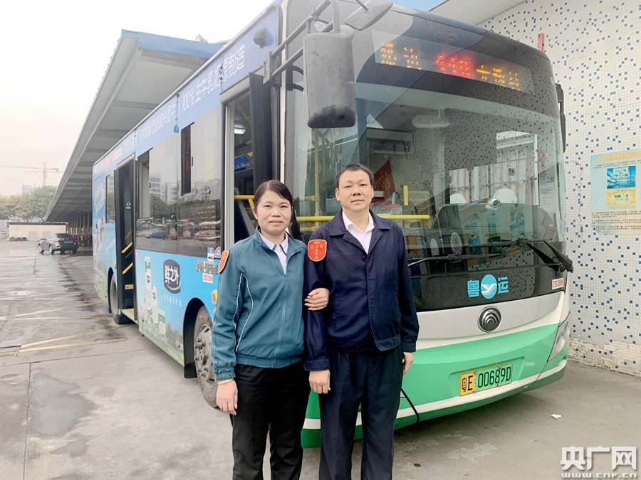 2月11日早上5:10分,天還沒亮,覃重章的妻子胡幼瓊提早了近20分鐘趕到了佛山粵運(yùn)公交城西停保場(chǎng),簽到、測(cè)溫、取車、驗(yàn)車,動(dòng)作嫻熟、一氣呵成。30分鐘后,胡幼瓊駕駛著118路公交車前往大墩站,準(zhǔn)備開始一天的營運(yùn)工作。胡幼瓊是廣西貴港人,和丈夫覃重章是同鄉(xiāng),入職佛山粵運(yùn)公交之前在電子廠做女工,2016年,在丈夫的鼓勵(lì)下,她順利取得了A1駕照和道路運(yùn)輸從業(yè)資格證,成為一名女車長(zhǎng)。為方便工作開展,佛山粵運(yùn)公交特別安排覃重章夫婦駕駛同一輛車做搭檔,一個(gè)上早班,一個(gè)上晚班。今年春節(jié)也較為特殊,他們的大兒子在服兵役不能回家過年,夫妻倆也積極響應(yīng)政府“留粵過年”號(hào)召,留在佛山過年。