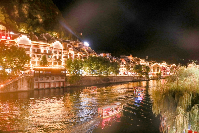 近日,來自四川成都的鄭先生帶著老人孩子游覽了“地下天宮”織金洞后,在織金古城里住下來。傍晚,皓月當(dāng)空,華燈初上,一家人漫步在流光溢彩的古城,廊亭橋榭,泉水叮咚,讓一家人旅途的疲憊煙消云散。