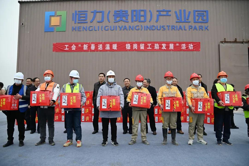 當(dāng)天,貴州省“工會(huì)新春送溫暖 穩(wěn)崗留工助發(fā)展”活動(dòng),在貴安恒力集團(tuán)公司、龍里快遞物流園同步舉行。貴州省總工會(huì)黨組書(shū)記、副主席楊再春,省總工會(huì)黨組成員、副主席魏俊分別在貴安、龍里出席上述活動(dòng)。