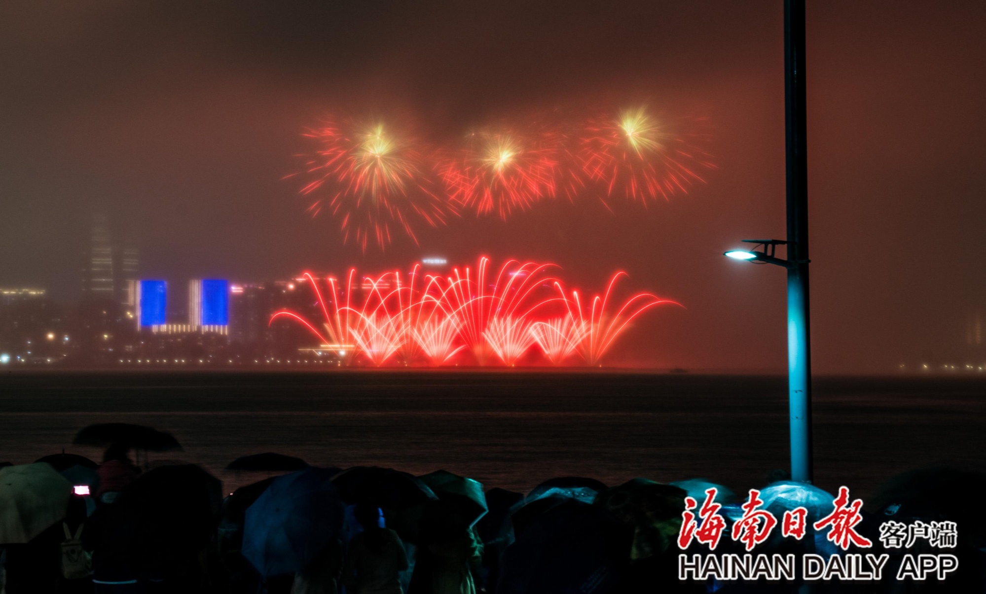 “雖然等了一天還下著雨,但這熱鬧勁兒,值了!”來(lái)自四川的務(wù)工人員陳波說(shuō),看著五彩斑斕的煙花,就像看到自己在自貿(mào)港打拼的日子,“有奔頭,有希望”。