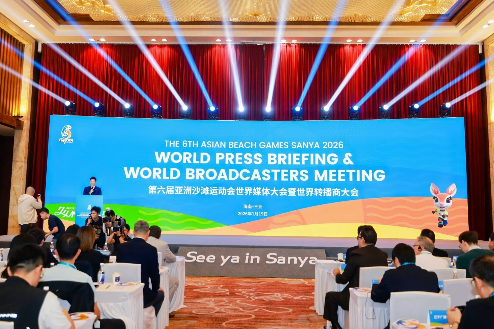 介紹三亞亞沙會籌辦進展、賽事亮點、服務保障及倒計時100天系列活動安排等情況。