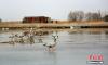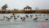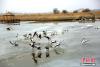 2月16日,地處甘肅河西走廊,祁連山下的張掖市,在春風(fēng)的吹拂下,氣候開始溫暖起來。在張掖國(guó)家濕地公園里,湖水冰面開始消融,一群斑頭雁在此嬉戲、覓食。它們有站的,有臥的,還有小心翼翼在冰面上行走的,萌態(tài)十足。 陳禮 攝 -