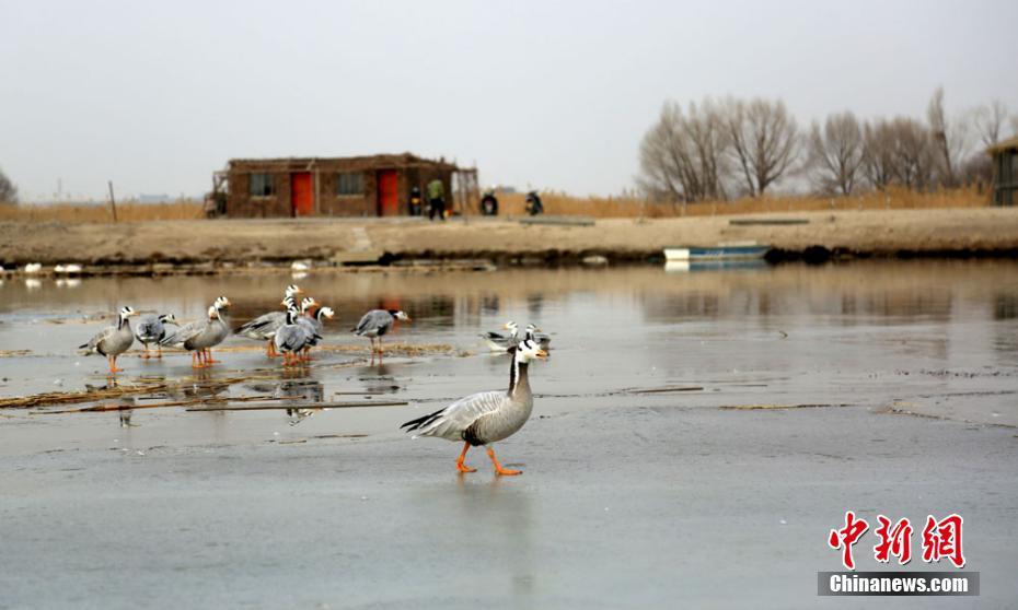 2月16日,地處甘肅河西走廊,祁連山下的張掖市,在春風(fēng)的吹拂下,氣候開始溫暖起來。在張掖國(guó)家濕地公園里,湖水冰面開始消融,一群斑頭雁在此嬉戲、覓食。它們有站的,有臥的,還有小心翼翼在冰面上行走的,萌態(tài)十足。 陳禮 攝