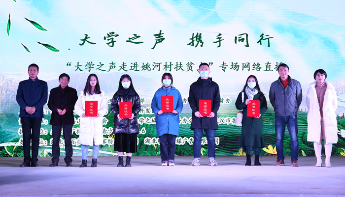 12月10日下午,由洪山區(qū)委宣傳部、新洲區(qū)委宣傳部、洪山區(qū)扶貧辦、新洲區(qū)扶貧辦、洪山區(qū)文化和旅游局、洪山經(jīng)濟開發(fā)區(qū)管委會、共青團洪山區(qū)委員會、洪山區(qū)大學之城建設服務辦公室聯(lián)合武漢廣播電視臺青少廣播共同推出“大學之聲走進姚河村扶貧點”專場網(wǎng)絡直播活動,與武漢市近10家高校師生代表30多人走進新洲區(qū)舊街街姚河村,見證2020年武漢市精準扶貧脫貧攻堅收官之年的豐碩成果。