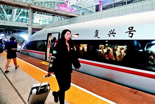 圖為:昨日下午,“復興號”動車組首次抵達武漢站