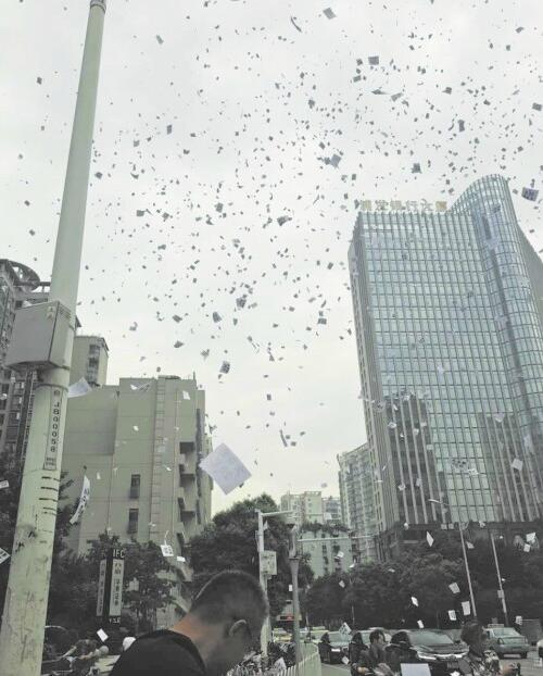 附近居民告訴記者,當(dāng)時(shí)無數(shù)張紙猶如雪花般從天而降,發(fā)現(xiàn)是一家方便面的廣告,引起了很多人圍觀。