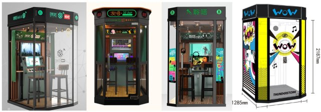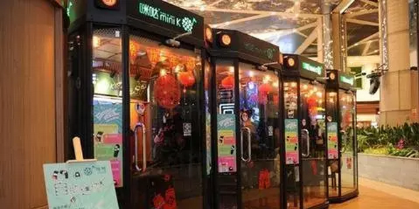 走進(jìn)迷你唱吧,一般可以看到兩把椅子,其隔音性很強(qiáng),房子里的用戶縱情歌唱,即便撕心裂肺,站在門外的人也聽(tīng)不到聲音。進(jìn)去唱歌的主要是年輕情侶或朋友,一般在等看電影,或排隊(duì)就餐時(shí)使用。