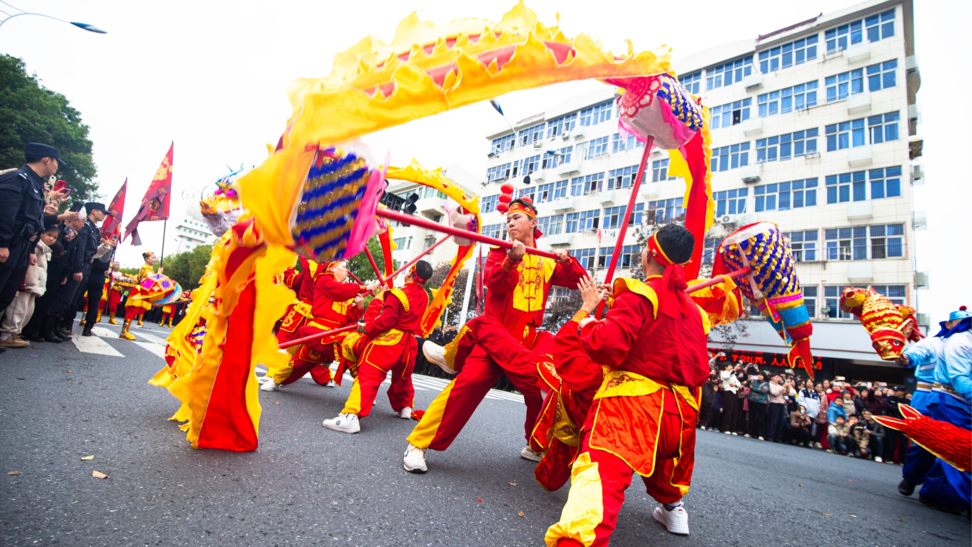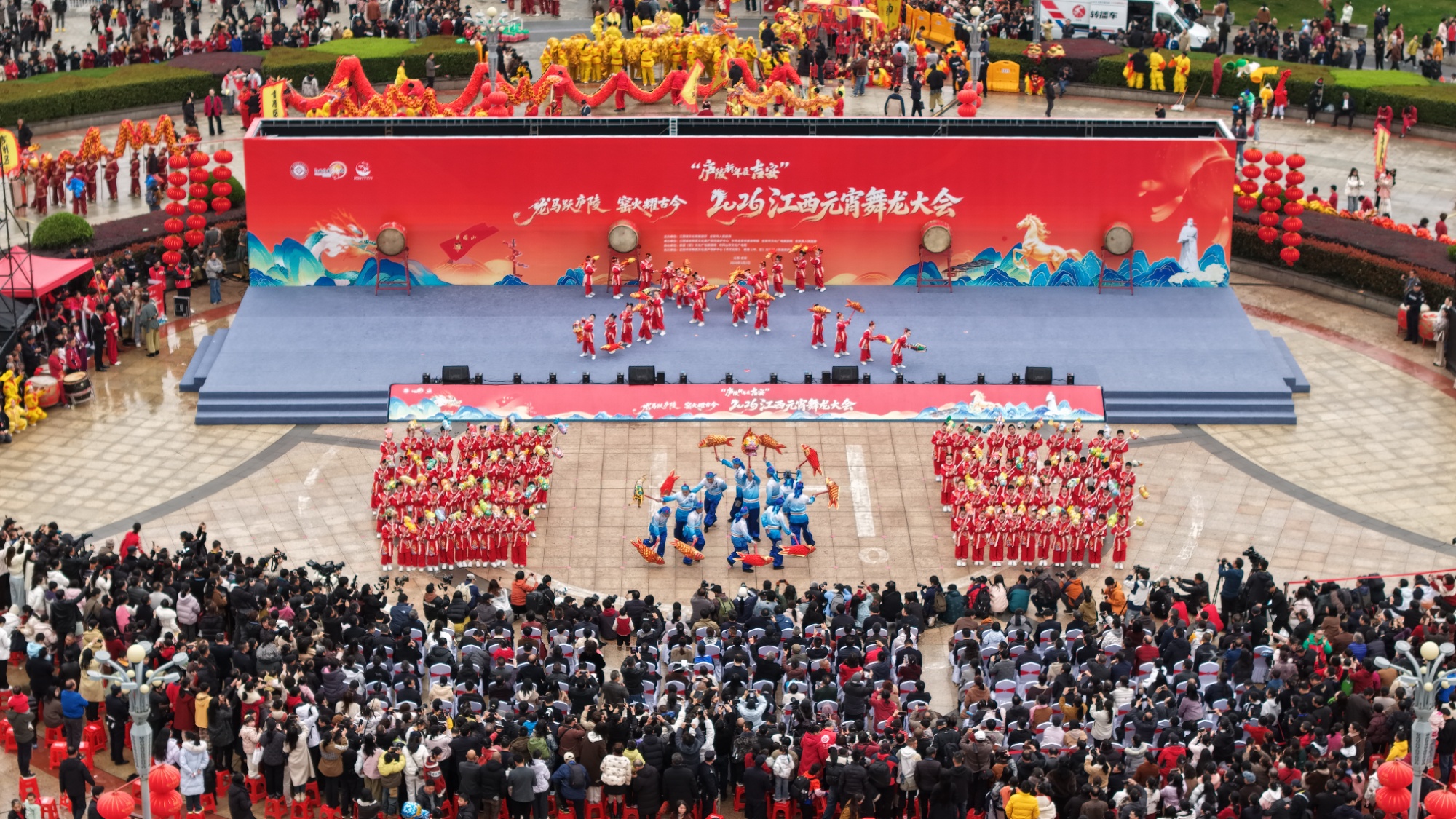 春雨又絲絲飄落,澆不滅滿城激情。廣場中央,數(shù)十條長龍匯聚成陣,昂首擺尾,擺出“龍騰廬陵”的宏大造型。鑼鼓聲震天動地,觀眾的喝彩聲此起彼伏。