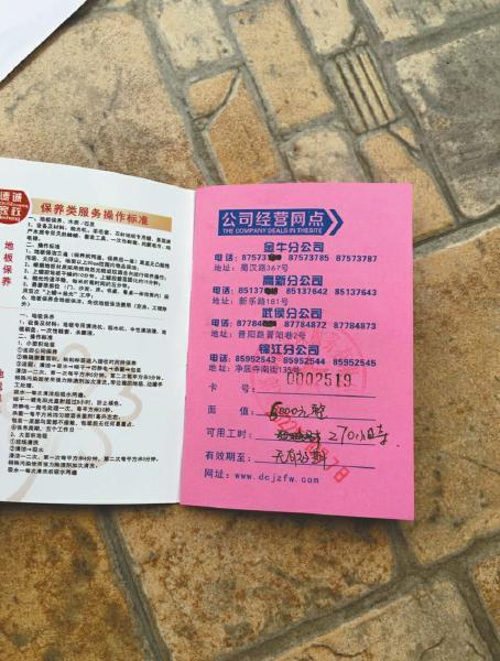 根據(jù)業(yè)主與德誠(chéng)家政簽訂的消費(fèi)方式,業(yè)主通過(guò)預(yù)存現(xiàn)金的方式購(gòu)買保潔小時(shí)數(shù),如4000元購(gòu)買167小時(shí),5000元購(gòu)買228小時(shí),6000元購(gòu)買340小時(shí)不等。記者初步統(tǒng)計(jì)了50戶會(huì)員,其合同額度總計(jì)超過(guò)30萬(wàn)元,仍有20萬(wàn)元左右沒(méi)有消費(fèi),即損失率高達(dá)65%。