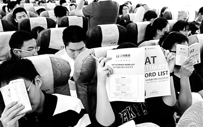 考生乘機(jī)隨團(tuán)參加SAT考試圖片來源/網(wǎng)絡(luò)