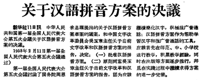 1958年2月12日,《光明日報(bào)》1版刊發(fā)《關(guān)于漢語拼音方案的決議》