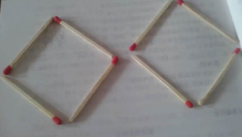 下面是由8根火柴棍組成的四邊形,要求讓其在只移動(dòng)兩根的情況下,變成一個(gè)四方形,火柴棍不能折斷,也不能彎曲。