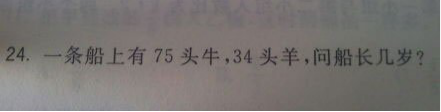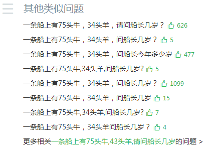 而從小學(xué)生的思維出發(fā),則是將題干中的75與34這兩個(gè)數(shù)字進(jìn)行加減乘除運(yùn)算,75減去34等于41,是在1到100之間,所以,多數(shù)人會(huì)覺(jué)得船長(zhǎng)的年齡可能是41歲。