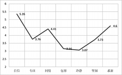 調(diào)查采用6分制等級問卷,結(jié)果以平均分、標準分表示各心理品質(zhì)的發(fā)展水平,以1-6分代表從低到高的發(fā)展趨勢,6分為滿分。