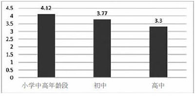 兒童專注自己事情的心理品質(zhì)在小學中高年段、初中和高中表現(xiàn)出明顯差異,小學生專注品質(zhì)分值最高,為4.12分,到高中生降為3.3分。這個變化有兩方面的解釋。一是隨著年齡的增加兒童注意力的集中品質(zhì)有所下降,更容易分散;二是隨著年齡的增加,兒童注意力分配水平能力在提升。