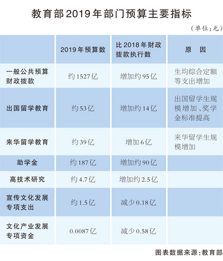 教育部公布2019年度部門預(yù)算,較上一年增加約447億元,增幅約10%——