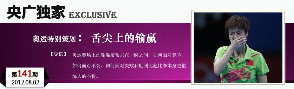* 乒球女單決賽后均痛哭 丁寧、李曉霞不握手 2012年倫敦奧運會乒乓球女單冠軍爭奪戰(zhàn)剛剛結(jié)束,國手李曉霞苦戰(zhàn)五局以4-1(11-8、14-12、8-11、11-6、11-4)戰(zhàn)勝隊友丁寧成功奪冠。比賽進程中,丁寧三度發(fā)球被判罰違例扣掉4分,局間通過翻譯向組委會表達強烈不滿,并且在賽后丟冠后與央視記者周到抱頭痛哭。