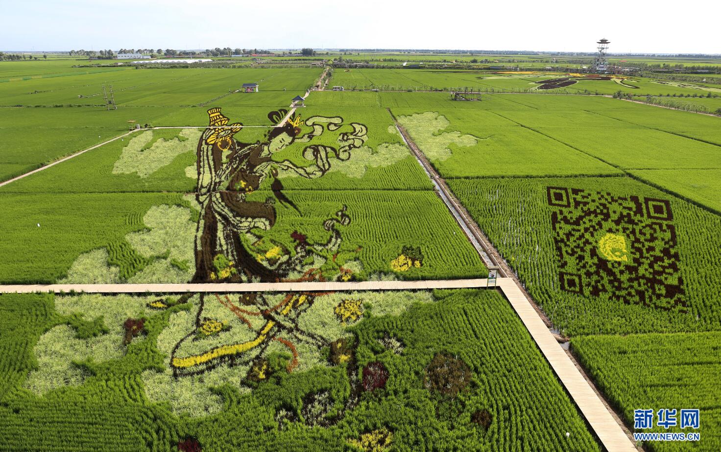 7月24日在沈陽(yáng)市興隆臺(tái)錫伯族鎮(zhèn)稻夢(mèng)空間園內(nèi)拍攝的稻田畫《美容大米》。 新華網(wǎng) 姜冰攝 -