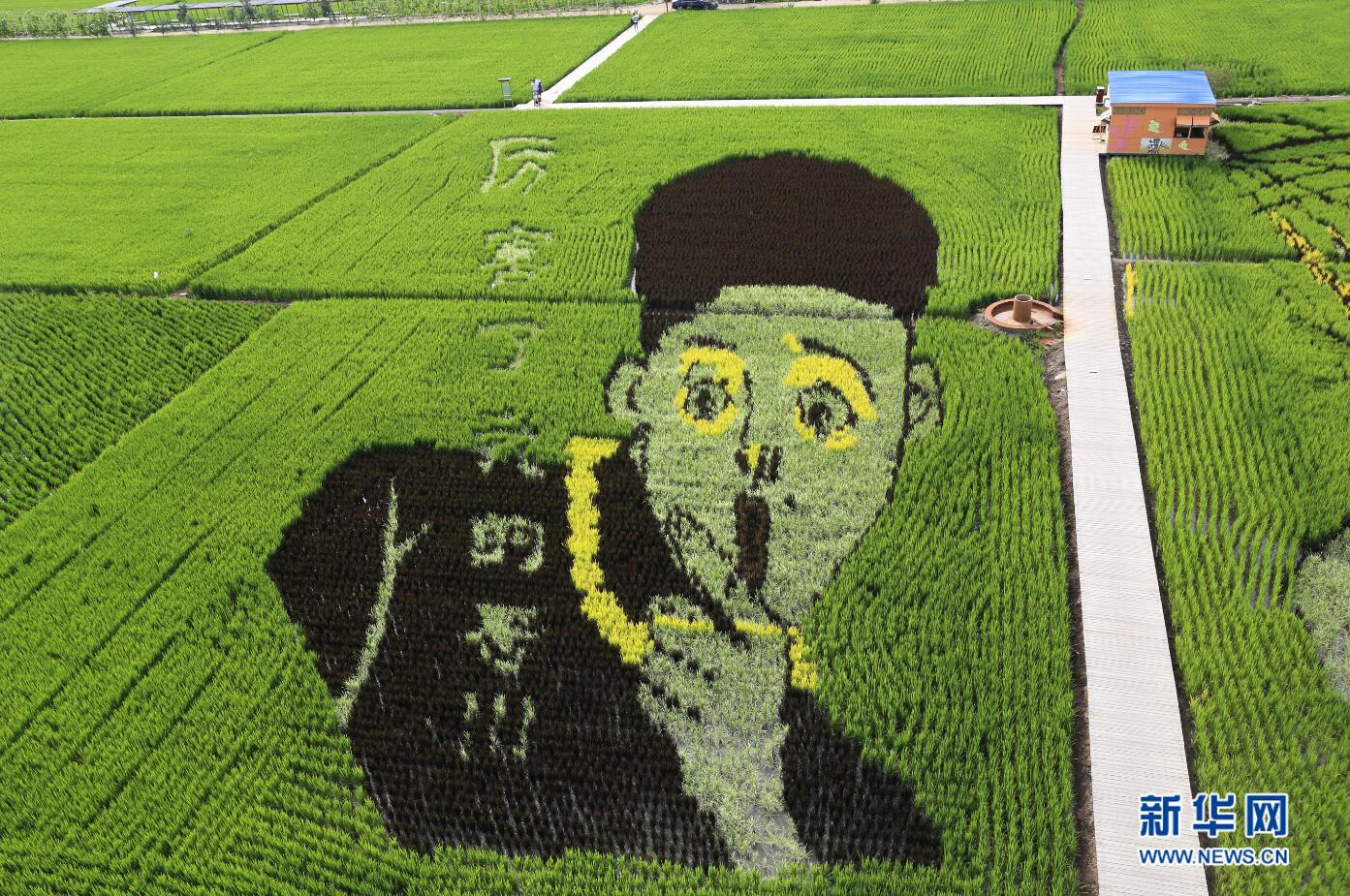 7月24日在沈陽(yáng)市興隆臺(tái)錫伯族鎮(zhèn)稻夢(mèng)空間園內(nèi)拍攝的稻田畫《厲害了我的哥》。 新華網(wǎng) 姜冰攝 -