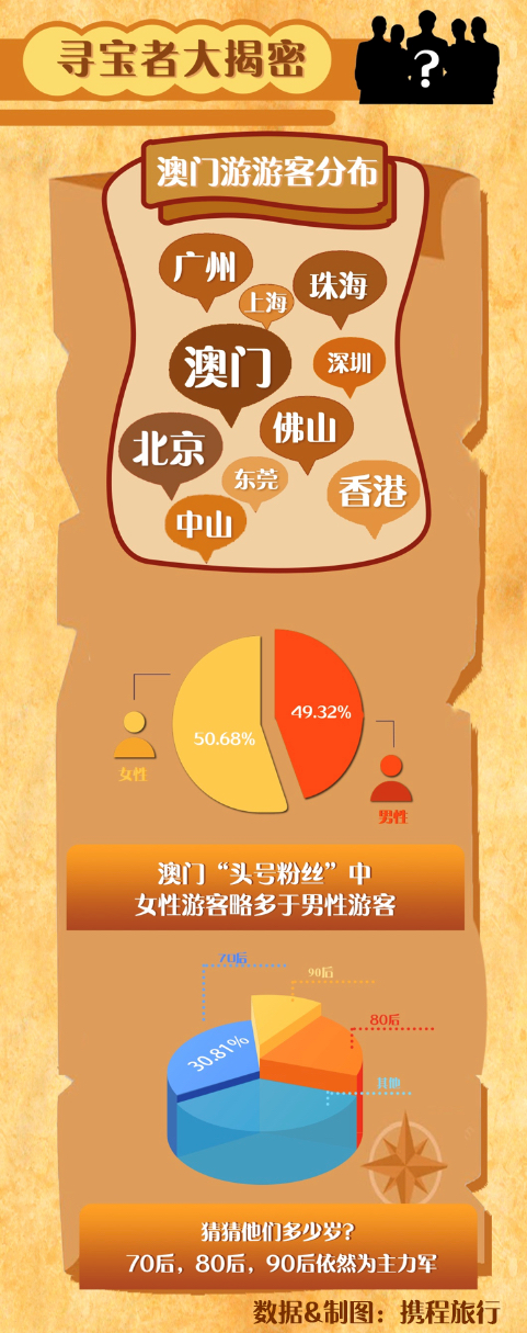 哪些游客pick澳門游?從數(shù)據(jù)中不難看出,廣州、珠海、澳門、深圳、佛山、上海、北京、中山、東莞、香港等地的游客榜上有名。其中,女性游客是澳門游的狂熱粉絲,占比50.68%。男性游客占比49.32%。時尚活力的澳門也吸引著越來越多年輕人的目光。游客年齡段分布在70后、80后、90后。其中70后占比30.81%,80后占比28.85,90后占比23.67%。
