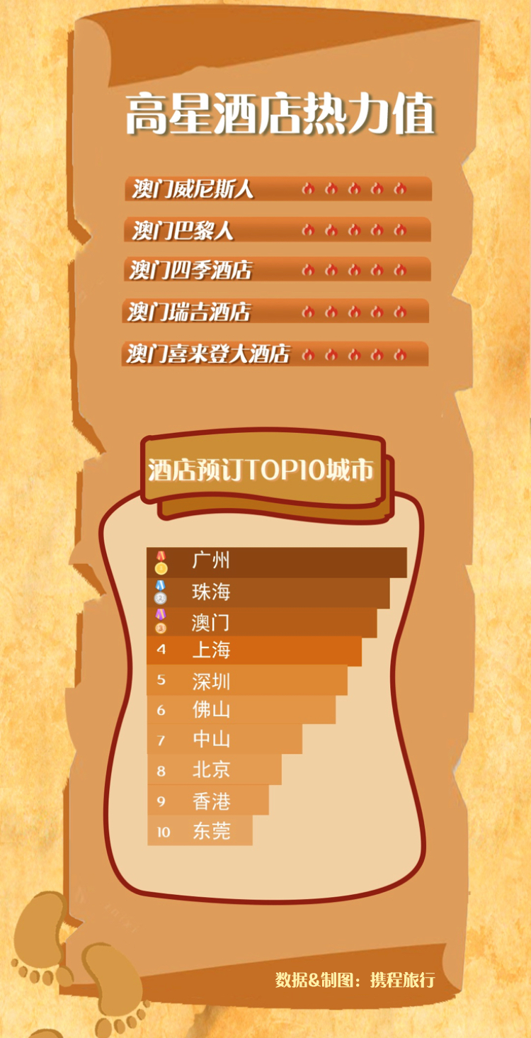 高星酒店即目的地依然是潮流。從攜程數(shù)據(jù)中可以看出,澳門高星酒店訂單預(yù)訂量環(huán)比增加50%。攜程預(yù)售的澳門酒店成為不少游客首選。游客對酒店要求更高。除了游玩當(dāng)?shù)鼐包c,品嘗特色小吃外。酒店美食套餐、酒店玩樂項目成游客“新寵”。預(yù)計游客在酒店待的時間較以往平均增長1.5個小時。酒店休閑,酒店度假,成為主流趨勢。