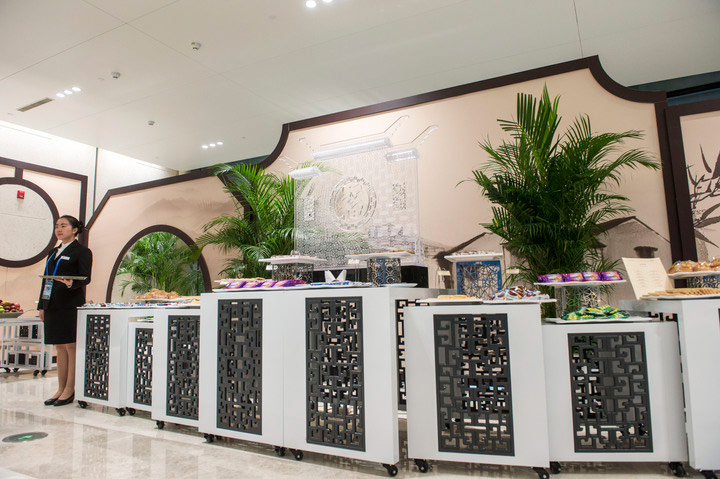 媒體茶歇區(qū)呈現(xiàn)著江南婉約風(fēng)格