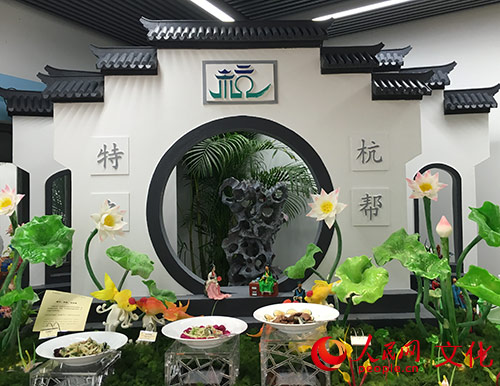 “江南風(fēng)光”是杭州具有代表性的景觀。由廚師團(tuán)隊(duì)用糖藝、面塑、泡沫雕的技術(shù)制作而成,充分展現(xiàn)了杭幫特色。