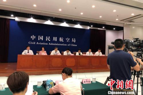 民航局6月例行新聞發(fā)布會現(xiàn)場。 程春雨 攝