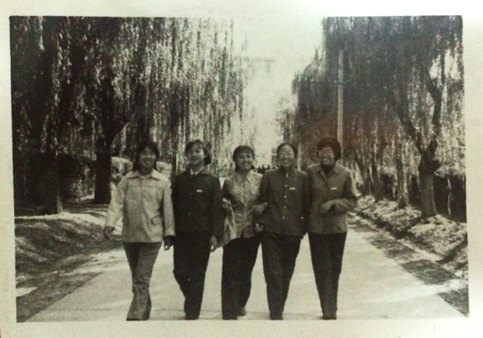 1979級考生虞立紅(左二)與同學(xué)在大學(xué)校園合影