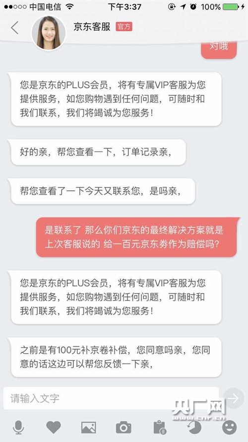 “京東承諾假一賠十,現(xiàn)在開(kāi)始忽悠人了!碑(dāng)事人馮先生向記者透露,獲悉京東給出最終方案后,他便決定只身赴京,委托北京的專(zhuān)業(yè)律師向京東討個(gè)說(shuō)法。
