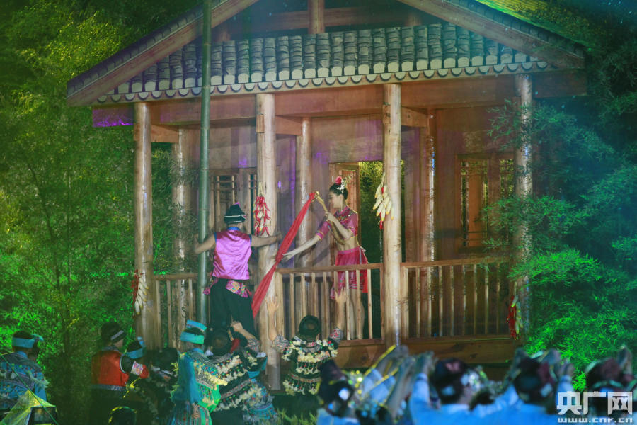 在縣城薩歲廣場,侗族群眾身著節(jié)日盛裝,在充滿民族風(fēng)情的侗歌聲中,湖南懷化通道侗族大戊梁歌會(huì)拉開了序幕。來自湘桂黔三。▍^(qū))知名主播主持晚會(huì),歌會(huì)以“五洲同唱、三省聯(lián)‘侗’、‘侗’心之旅”為主題。整臺(tái)晚會(huì)形式多樣亮點(diǎn)紛呈,以千名本地侗族群眾表演的《戊梁之戀》開篇,高度的民族認(rèn)知感和歸屬感將迅速把觀眾帶入專屬侗族“情人節(jié)”的浪漫情境之中。五洲同唱,世界連線,讓世界“侗”聽。五洲朋友同唱侗族情歌,民族歌聲融合國際磁場。用VCR的形式匯聚全球面孔,展現(xiàn)侗族文化強(qiáng)大的社會(huì)影響力和世界認(rèn)同感,將侗歌的靚聲倩影灑落世界各個(gè)角落,落地破土,華美綻放。探究侗族原始習(xí)俗,還原侗族特色傳統(tǒng)。高歌曼舞,傳統(tǒng)克復(fù)。最大程度的還原侗家男女行歌坐夜的傳統(tǒng)戀愛方式,山歌侗舞,曲曲傳唱。全新的電視手法,淋漓壯闊的舞臺(tái),將獨(dú)有的侗族文化,最大規(guī)模的呈現(xiàn),至純之戀,極致演繹,塑造典型。多種演繹形式巧妙融合,開創(chuàng)演繹新道路。雜技,桃花LED傘,情景等視覺詮釋,全新的音樂創(chuàng)編,民族與時(shí)尚完美結(jié)合,用全新的電視手法,詮釋經(jīng)典的民族瑰寶。整臺(tái)晚會(huì)過程采取全場互動(dòng)、全城互動(dòng)、全網(wǎng)互動(dòng)、五洲互動(dòng)的形式全方位、全視角在湖南娛樂頻道震撼直播。 “阿妹這邊把歌唱,阿哥對(duì)河動(dòng)心腸,哥不嫌棄成雙對(duì),妹不嫌意結(jié)成雙。久不唱歌忘記歌,久不打魚忘記河,丟刀不用生了銹,丟工不來妹心多.....。” -