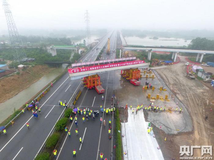 此次拆除的1號上跨天橋主跨長35米,寬8米,重量達(dá)550噸,相當(dāng)于400輛私家車,是今天要拆除的3座天橋之一,另外兩座為T1標(biāo)4號天橋和T2標(biāo)4號天橋。