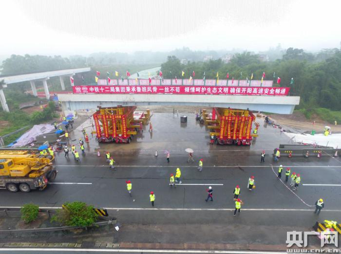 “為確保拆除過程順利進(jìn)行,我們做了大量的準(zhǔn)備工作,提前一個月組織施工人員進(jìn)行技術(shù)培訓(xùn)!秉S正昌介紹,開陽擴(kuò)建管理處多次組織預(yù)演,提前在場外拼裝SPMT快速拆除馱運系統(tǒng),讓工人熟練掌握技術(shù)。拆移舊天橋當(dāng)天,從模塊車啟動到梁體成功卸載,整個過程用時不到3個小時。