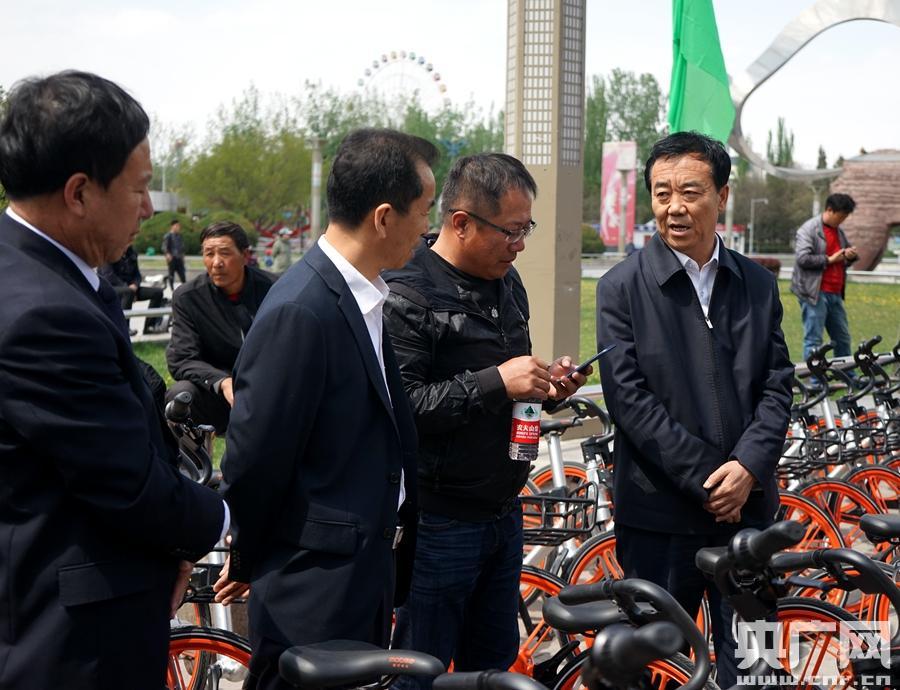 銀川市長白尚成(右一)了解共享單車情況(央廣網(wǎng)實習記者靳樹言 攝) 根據(jù)合作協(xié)議,兩家企業(yè)將分三期,在今年6月底之前投放3萬輛共享單車,滿足市民的低碳出行需求。 -